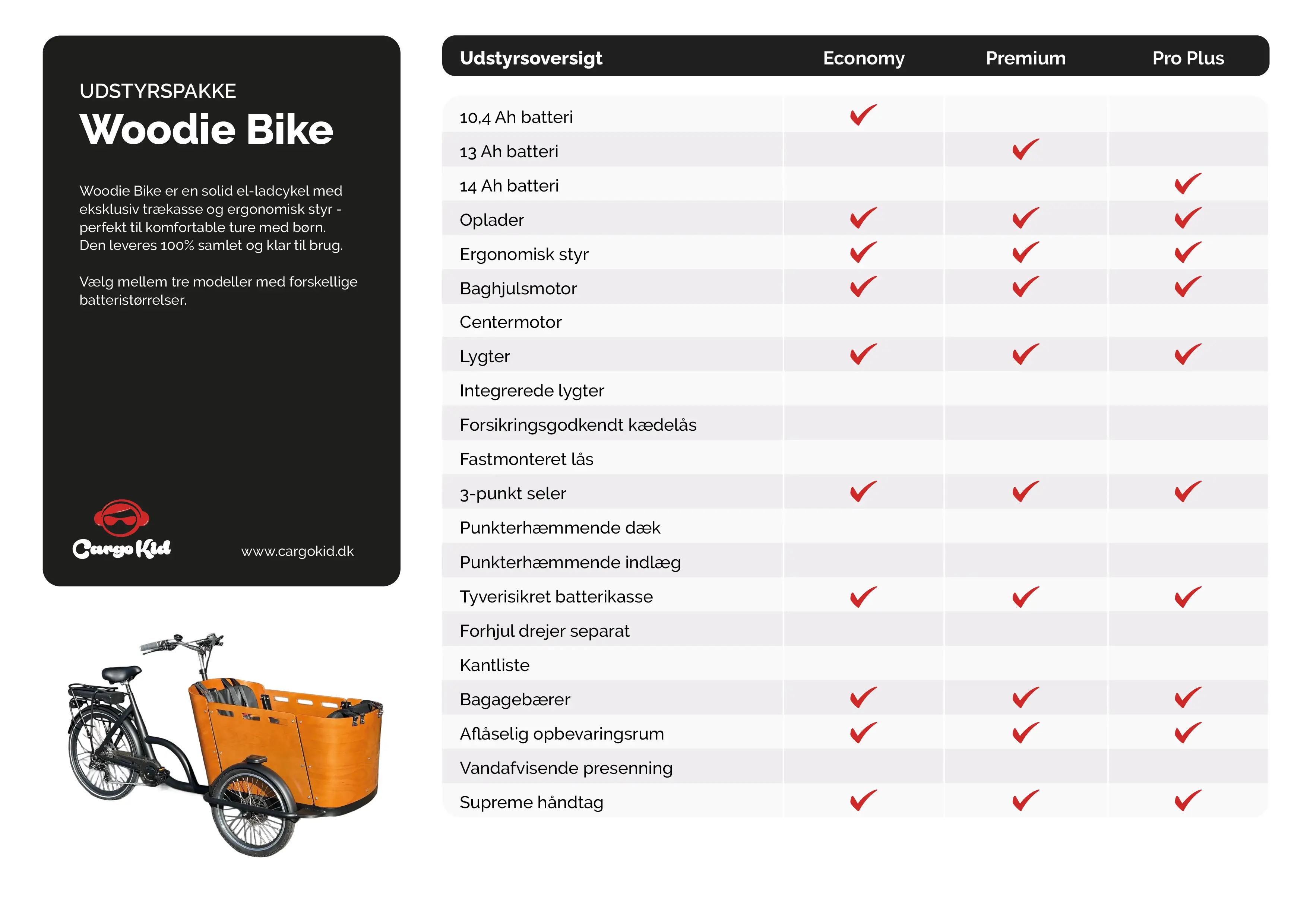Economy Woodie Bike18.495,00 DKKFå en GRATIS børneladcykel og et påskeæg med til en værdi af kr. 2.695,- hvis du køber denne Woodie Bike model som leveres med et 10.4 AH batteri og et stærkt hydraulisk bremsesystem med parkeringsbremse der gør en hård opbremsning legende l